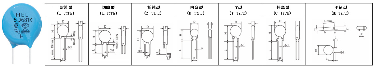 Remark: the Impluse voltage testing standards(1.2/50μs) with 40 times are only applicable to the products which with the varistor voltage more than 430V.